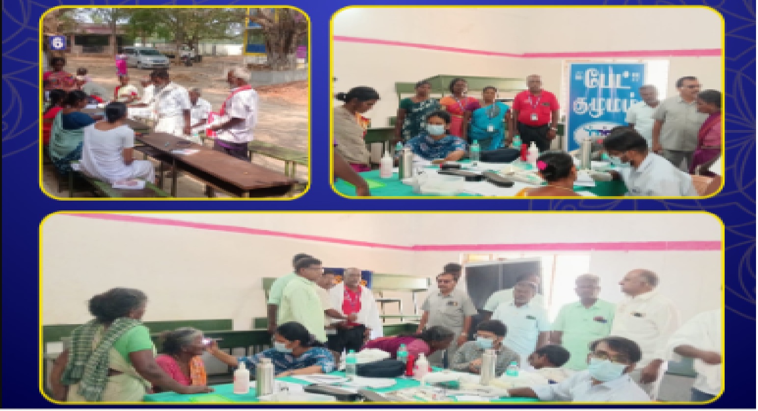 An eye camp was conducted on 26th October 2025 at G.R. Marriage Hall, Pondy Bazaar, Kottiyal, Ariyalur District, in collaboration with the Pondy Bazaar–Kottiyal Lions Club, DBCS Ariyalur, and other organizations, along with Aravind Eye Hospital, Puducherry. A total of 272 individuals received outpatient eye care during the camp, and 80 of them were referred to Aravind Eye Hospital, Puducherry, for further medical procedures.