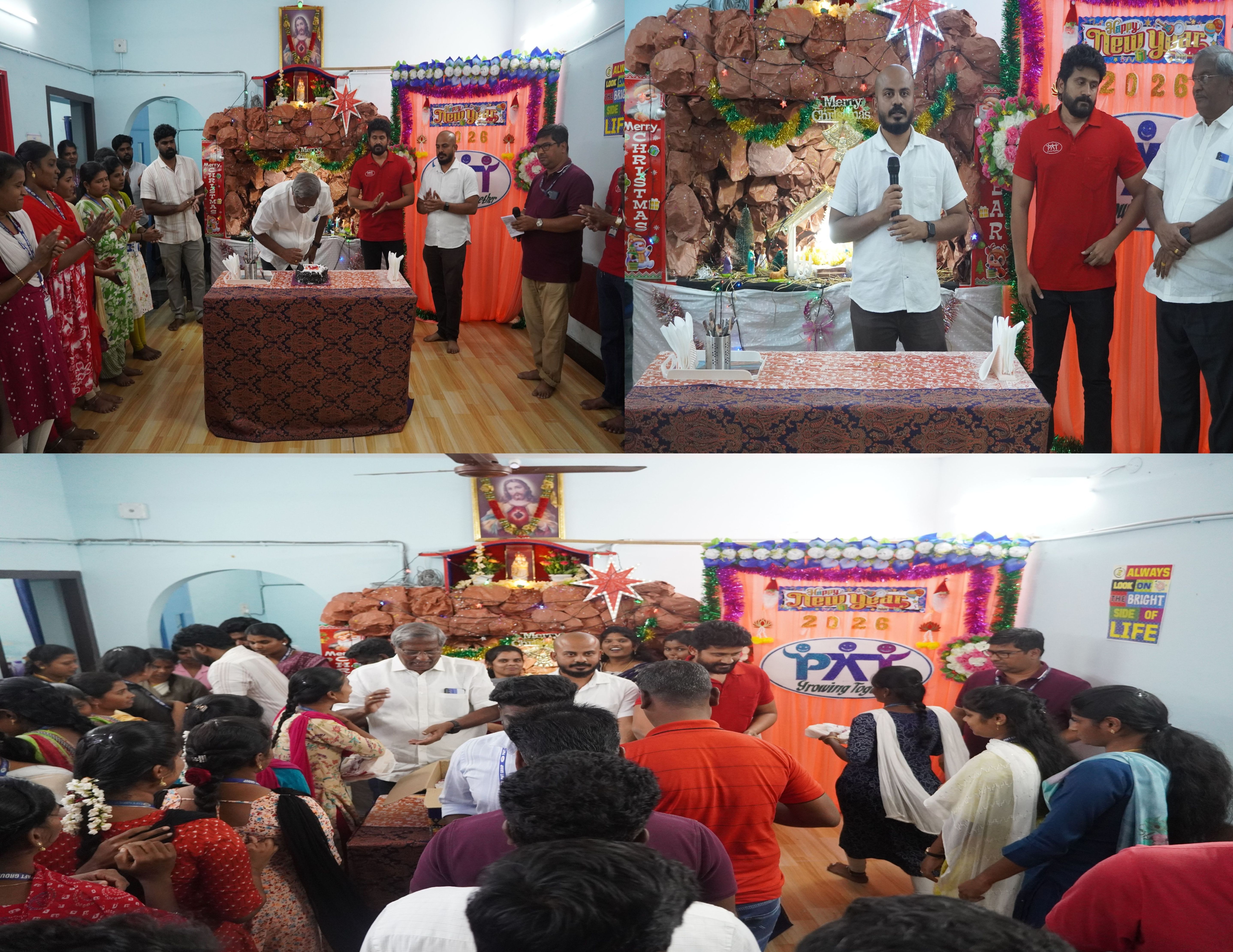 On 27th December 2025, PAT Group organized a small yet joyful gathering to celebrate Christmas and welcome the year 2026. The celebration began with a Christmas/New Year cake cutting, followed by warm wishes from the management. The event concluded with the distribution of sweets to all staff, spreading happiness and festive cheer throughout the team