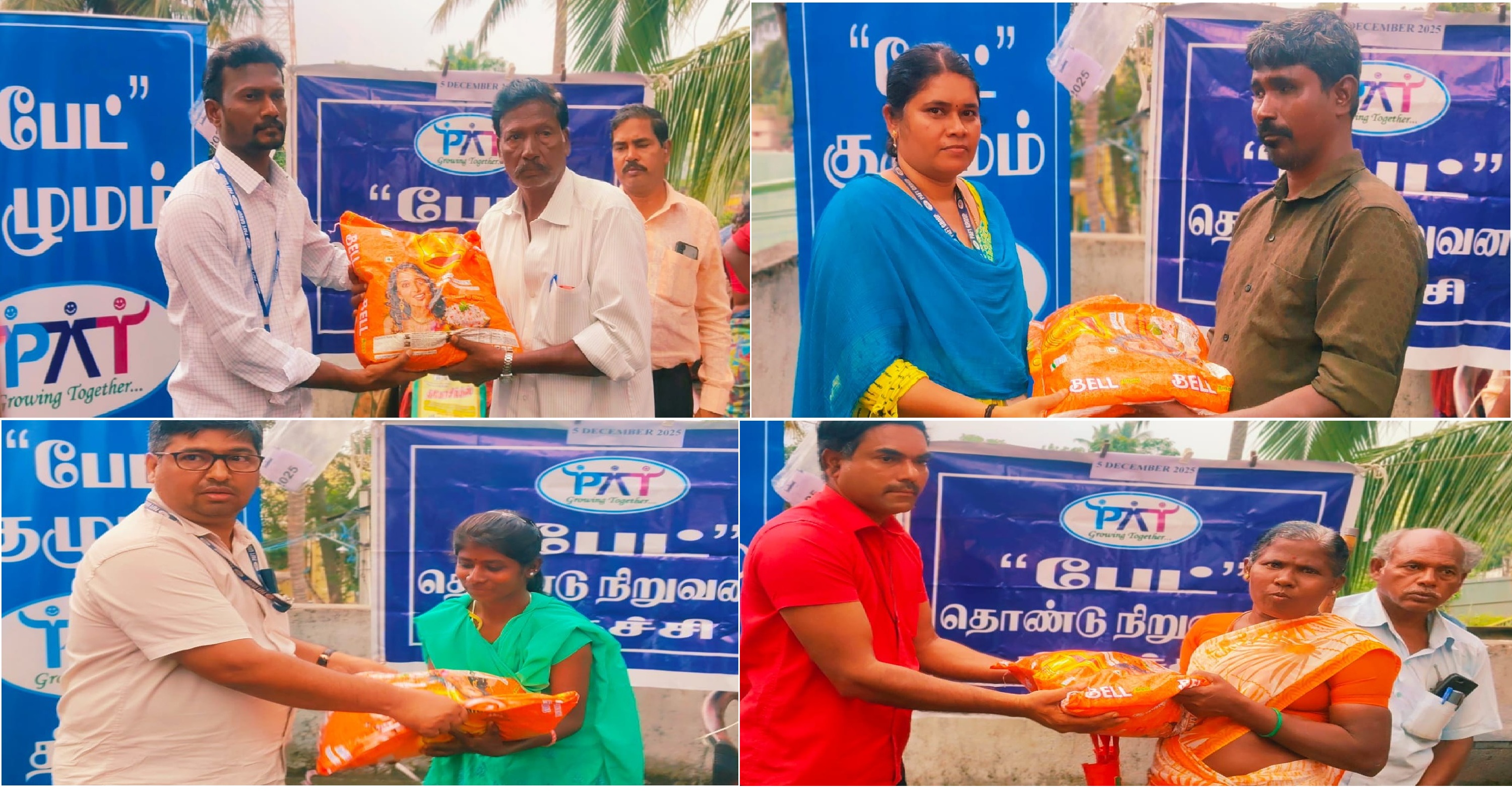 The monthly rice distribution drive was carried out on 5th December 2025 at Viralimalai, Pudukkottai District. Around 30 individuals with visual impairment, physical disabilities, and intellectual challenges were provided with 10 kg of rice each. The distribution was conducted by PAT officials.