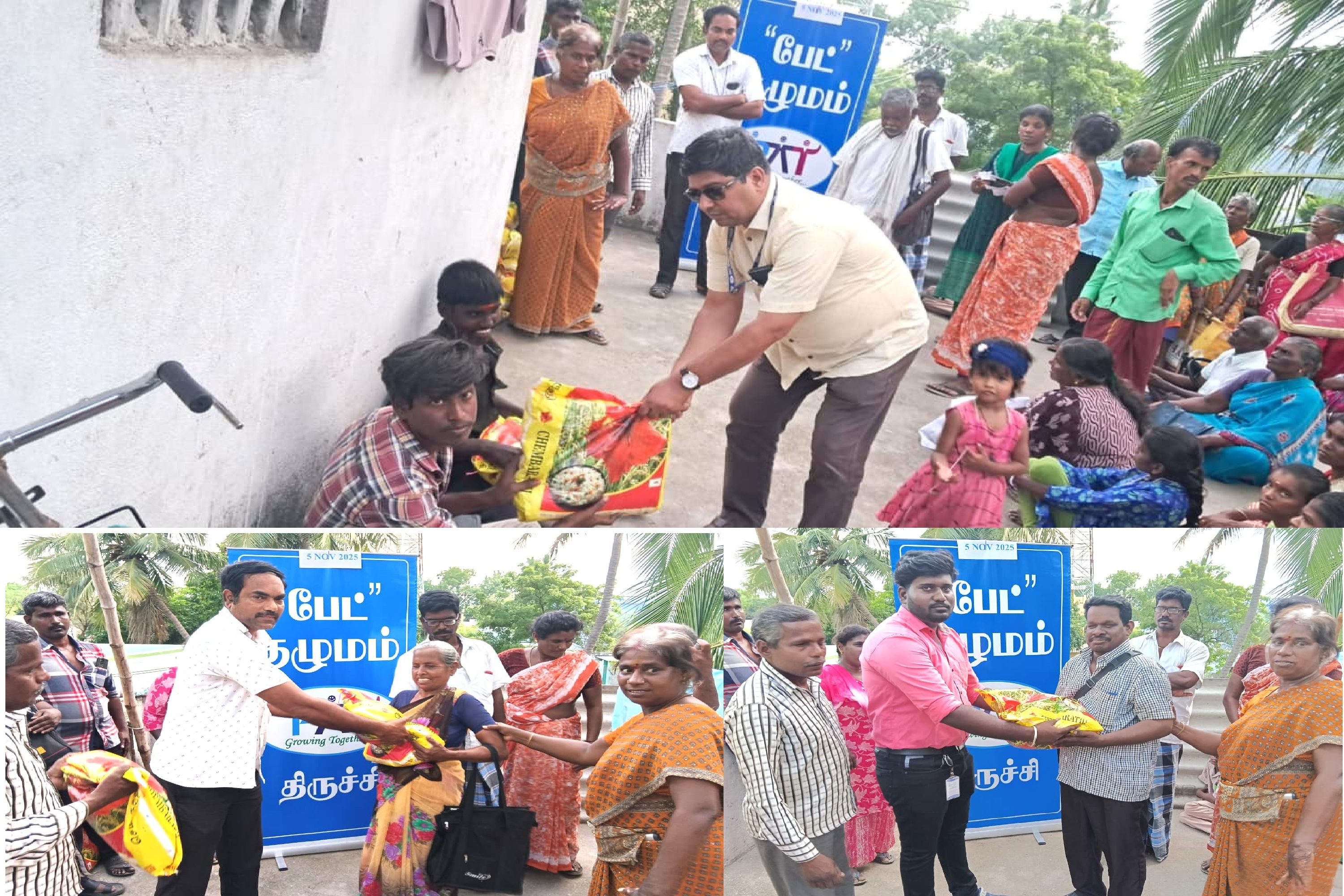The monthly rice distribution drive was carried out on 5th November 2025 at Viralimalai, Pudukottai District. Around 30 individuals with visual impairment, physical disabilities, and intellectual challenges were provided with 10 kg of rice each. The distribution was conducted by PAT officials.