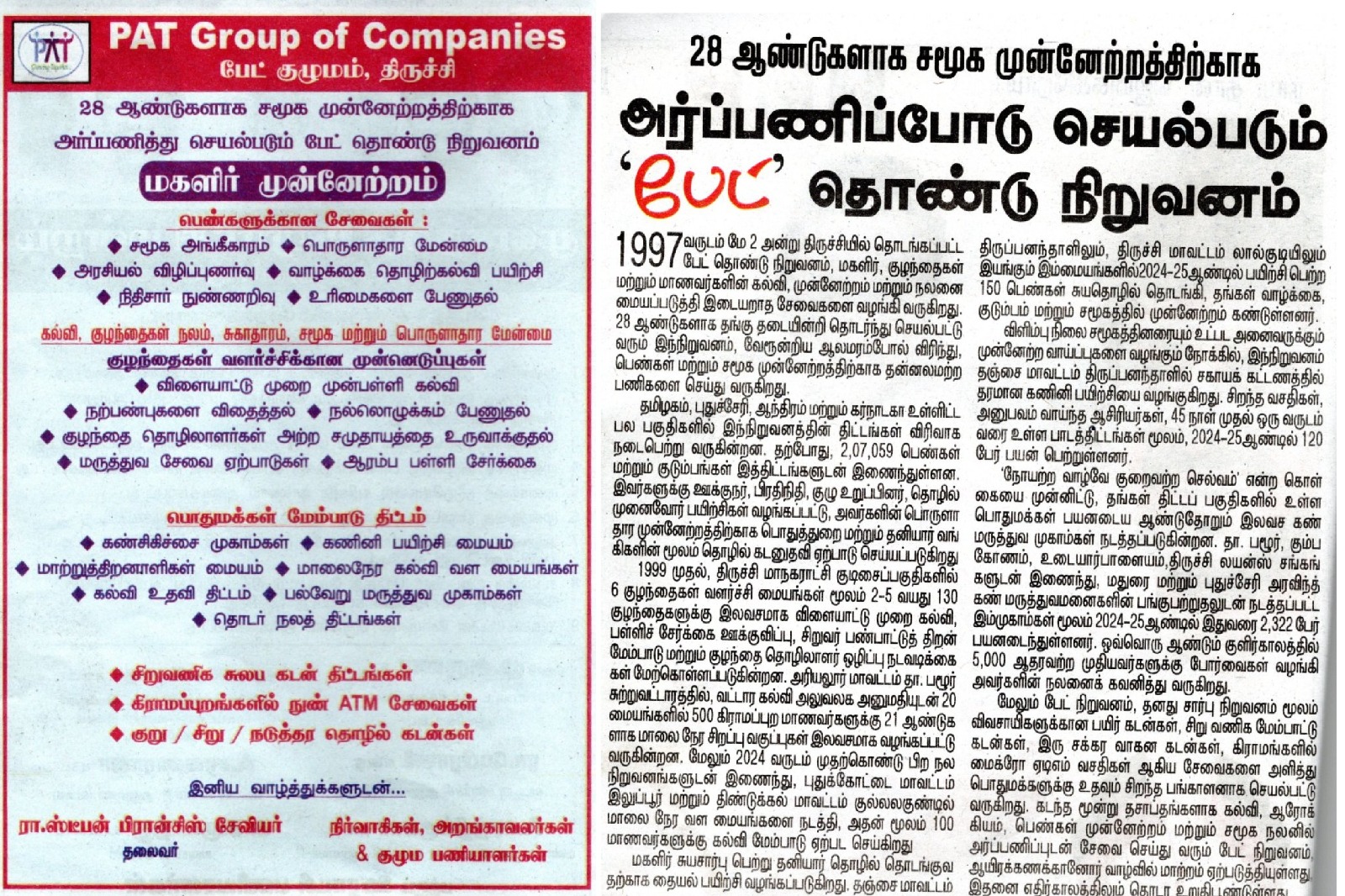நமது அறக்கட்டளை பற்றிய செய்தி தொகுப்பு மற்றும் விளம்பரம், தினகரன் தொழில் மலர் சிறப்பு பதிப்பில் வந்துள்ளது. 28 ஆண்டுகளாக சமூக முன்னேற்றத்திற்காக செயல்படும் நமது பணிக்கு கிடைத்துள்ள ஒரு சீரிய அங்கீகாரம் இது.